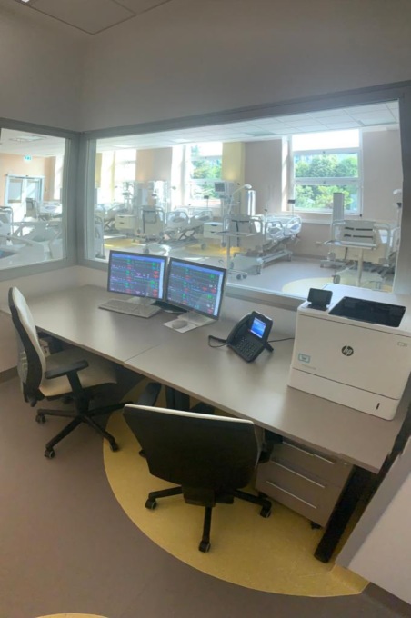 • travi pensili e travi testaletto; la scelta ha anche tenuto conto dei vincoli strutturali dell’open space e degli spazi per consentire al personale un agevole supporto al paziente;