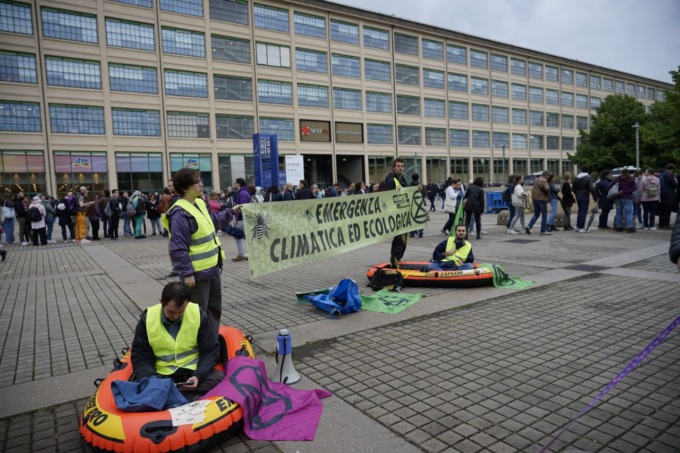 Alcuni attivisti di Extinction Rebellion hanno scaricato due canotti all’ingresso del Salone del Libro. La manifestazione arriva dopo le proteste di ieri durante la presenza della ministra Roccella e ha l’obiettivo di riportare l’attenzione sulle tragedie dei giorni scorsi causate dalle alluvioni in Emilia Romagna. “Crisi climatica ed ecologica” si legge sullo striscione.