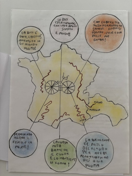 In vista del Tour de France in Piemonte, le scuole del territorio regionale sono state invitate alla realizzazione di un elaborato grafico sul tema sportivo. Dal 2017, infatti, l’ente organizzatore del Tour de France e la Comunità Ospitante invita giovani studenti e studentesse dai 9 ai 12 anni alla scrittura di un dettato o alla creazione di un disegno che evochi il passaggio della corsa nel territorio.