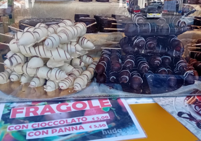 Si vende più che altro a stranieri e scolaresche che però si limitano a comprare la merenda per il pomeriggio: una fetta di salame al cioccolato, una cioccolata da passeggio.