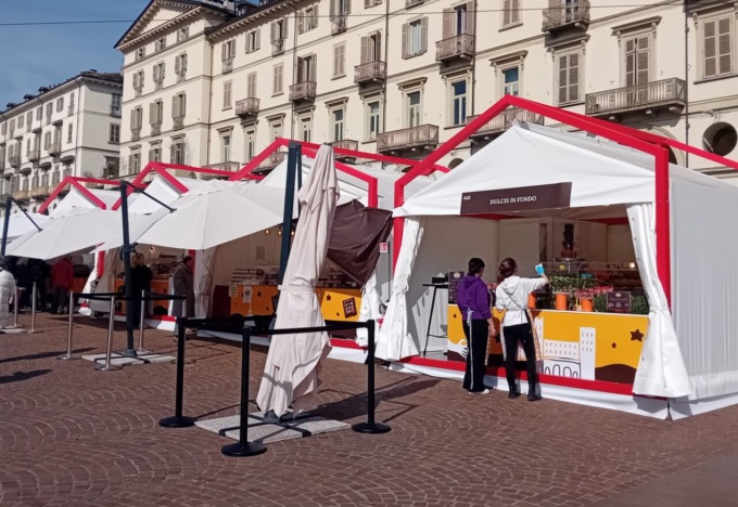 Mi giro e vedo una signora piena di pacchetti e dall’aria entusiasta, oserei dire (anche per la totale mancanza di tracce di tipico aplomb sabaudo) che molto probabilmente si tratta di qualcuno giunto in città per fare turismo goloso. Un bel fermo immagine di un evento che ha sicuramente ancora tanto da dare nei prossimi giorni.