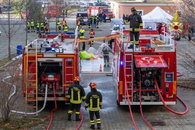 Alle attività esercitative, caratterizzate dall’evacuazione totale di un edificio scolastico con una popolazione di oltre 1800 studenti distribuiti in 90 classi, e dal salvataggio di 17 studenti in difficoltà rimasti all’interno dell’edificio, hanno attivamente partecipato anche personale della Polizia di Stato, militari dell’Arma dei Carabinieri e della Guardia di Finanza, personale della Polizia Locale, volontari della Croce Rossa Italiana e degli Uffici di Protezione Civile locale.
