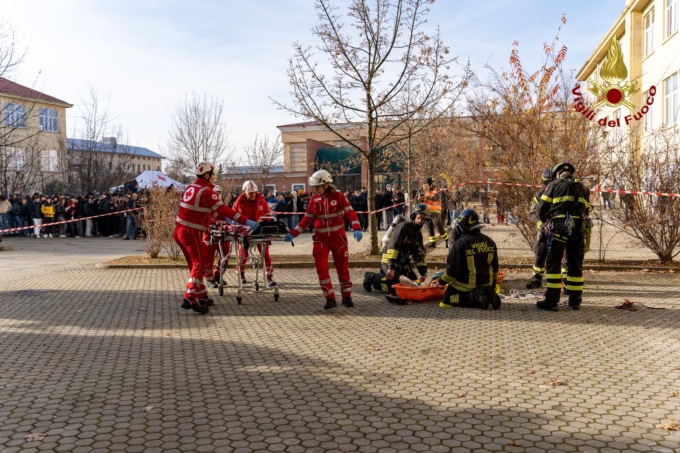 La sinergia tra Vigili del Fuoco, Forze dell’Ordine e volontari della Croce Rossa Italiana e della Protezione Civile locale, ha sottolineato, ancora una volta, l’importanza della preparazione e della cooperazione interistituzionale a garanzia della sicurezza delle comunità scolastiche e, più in generale, delle comunità cittadine, in situazioni di crisi e di emergenza, anche complesse.