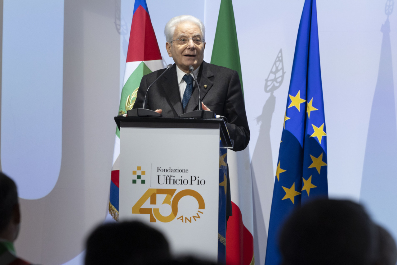 Il Presidente della Repubblica Sergio Mattarella in occasione della cerimonia per il 430° anniversario della Fondazione Ufficio Pio e della Compagnia di San Paolo