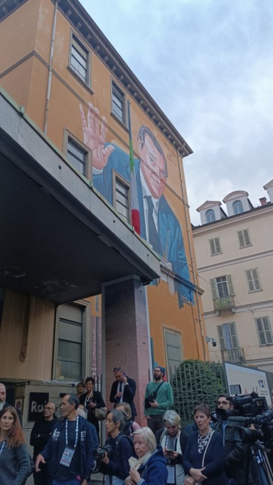“Sono molto emozionato di essere qui. Ringrazio la Rai, il Prix Italia, le maestranze che hanno voluto il nome di mio padre su questo centro. Lui mirava a lavorare per cercare la qualità. Mio padre amava tantissimo la città di Torino. Mi ha sempre raccontato molti dettagli della sua carriera. Lui ha iniziato con la radio perché la tv non esisteva ancora. Me lo immagino arrivare qui con la “giardinetta” che serviva per fare i servizi fuori città. Se lui avesse immaginato che il suo nome sarebbe stato su una targa, qui a simboleggiarlo non ci avrebbe mai creduto. Con il murales lui c’è ancora, saluta la città”.