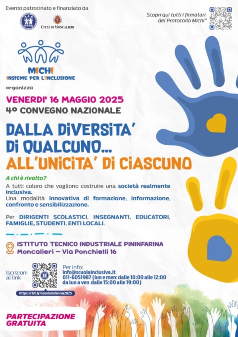 Nella giornata di venerdì 16 maggio 2025, si terrà, alle 16:30, all’istituto tecnico Pininfarina la quarta edizione del convegno sulla costruzione quotidiana, faticosa e concreta di una società più inclusiva dal titolo “IL PROTOCOLLO “MICHI – Insieme per l’Inclusione” NON FA NOTIZIA… PER FORTUNA!