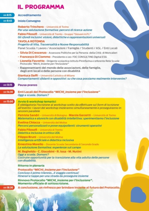 In questo contesto si terrà il rinnovo ufficiale del Protocollo “MICHI – Insieme per l’Inclusione”, promosso dall’associazione A.I.R. Down e sottoscritto oggi da una rete solida di attori del territorio e non solo.