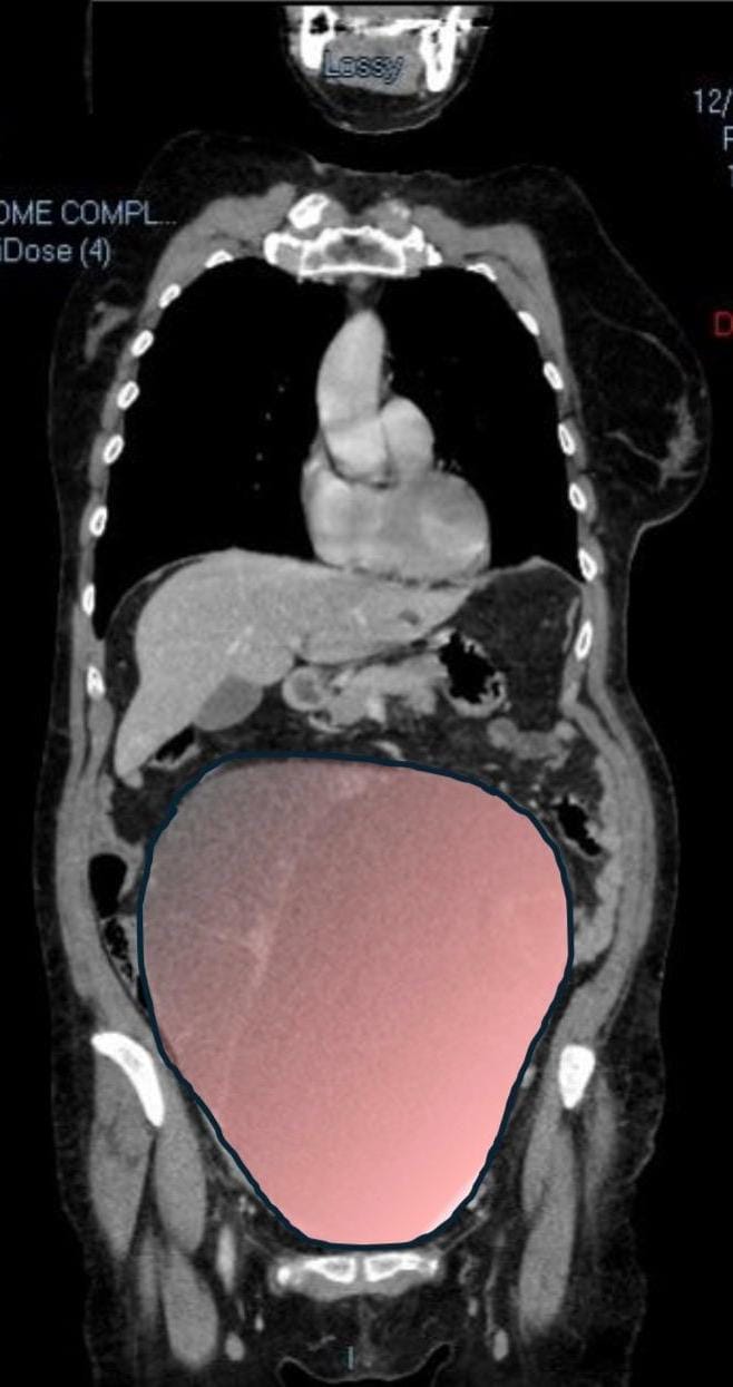 Per mesi la gigantesca cisti ovarica, con un diametro di circa 28 centimetri, è rimasta nascosta, senza dare segnali evidenti. La paziente non si era accorta di nulla. L’allarme è scattato quando la massa, associata alla presenza di una seconda neoplasia intestinale, ha iniziato a comprimere il colon, provocando sintomi acuti ed improvvisi fino ad una grave difficoltà intestinale non più ignorabile.