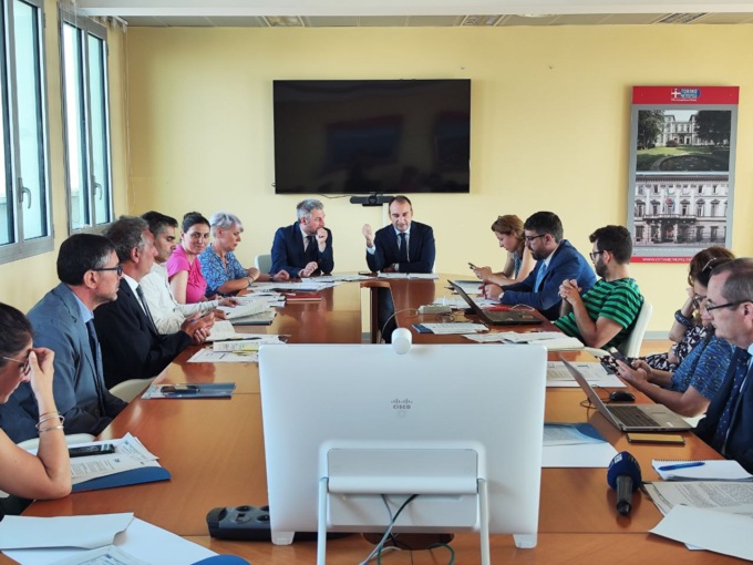 Il sindaco della Città metropolitana di Torino Stefano Lo Russo insieme al vicesindaco metropolitano Jacopo Suppo, le consigliere delegate allo sviluppo economico Sonia Cambursano, ai diritti Valentina Cera, ha presentato i dati di sintesi di un lavoro che impegna la struttura tecnica ed amministrativa dell’Ente, con il coordinamento dei consiglieri metropolitani delegati.