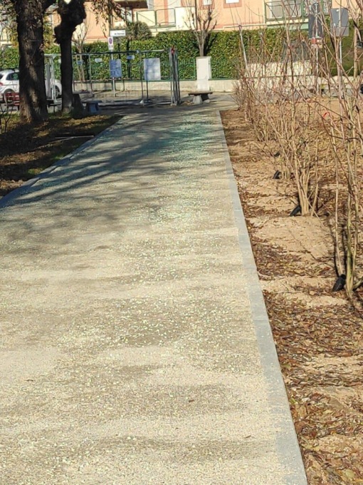 Sempre per “raffrescare” questa parte di città sono state fatte delle “opere di depavimentazione” per un totale 1300 mq di asfalto (380 sono in stabilizzato naturale e 920 a prato).