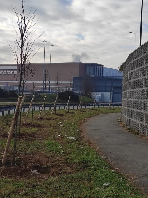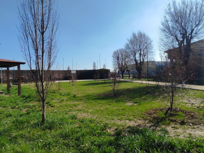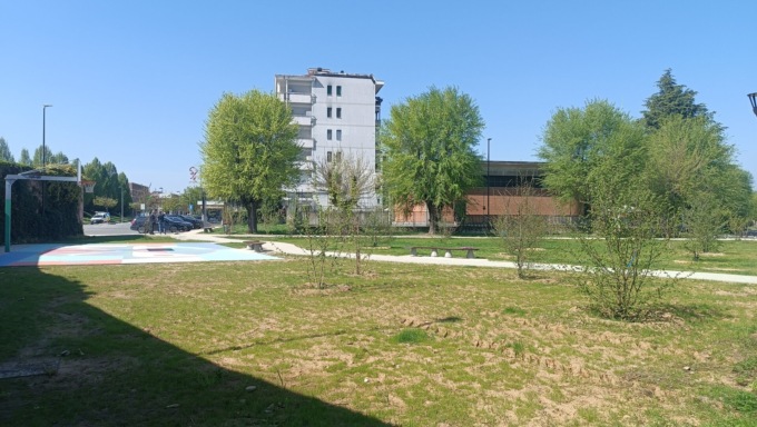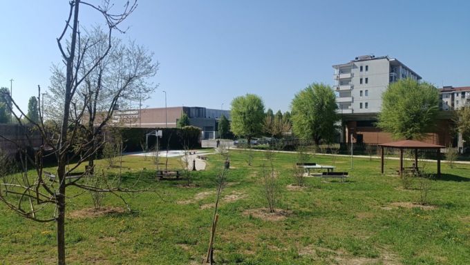 Nell’area sono state piantumate 57 nuove essenze (25 aceri campestri in forma arbustiva, 14 alberi di giuda, 16 carpini e 2 tigli, edera bicolore, vite americana, gelsomino) per ridurre le isole di calore, assorbire la CO2, le acque meteoriche, le polveri sottili.