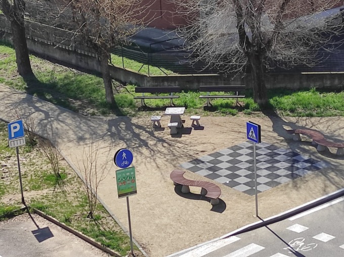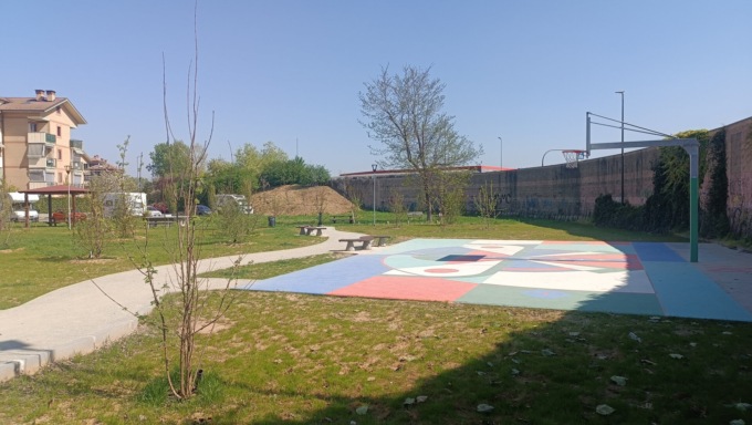 Per rendere più bella, inclusiva e far vivere l’area sono stati inseriti tavoli da pingpong, un campetto da basket, un tavolo per giocare a scacchi, panchine, cestini, un gazebo e una fontanella.