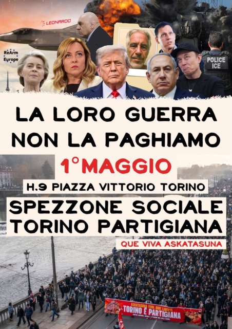 L’avvicinarsi del Primo Maggio a Torino delinea i contorni di una tempesta perfetta, dove il malessere sociale si salda a una retorica di aperta insubordinazione contro quello che viene definito il “partito unico della guerra”. Il clima cittadino è saturo di una tensione che va ben oltre la consueta mobilitazione sindacale, alimentata dalla percezione di una crisi economica senza precedenti che sta letteralmente strozzando le famiglie. Non si tratta più soltanto di rivendicazioni salariali, ma di una contrapposizione frontale contro un sistema che, agli occhi dei manifestanti, sacrifica il welfare sull’altare dell’industria bellica e degli interessi imperialisti. Il pericolo di un’esplosione di rabbia nelle piazze è concreto, spinto dalla convinzione che le bollette lievitate e l’inflazione galoppante siano il prezzo diretto di un coinvolgimento militare inaccettabile, simboleggiato graficamente dai volti dei leader mondiali e dei magnati della tecnologia che dominano l’attuale scacchiere geopolitico.