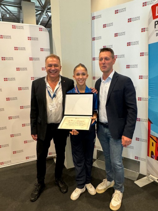 L’assessore al Commercio, Agricoltura e Cibo, Turismo, Sport e Post-Olimpico, Caccia e Pesca, Parchi della Regione Piemonte Paolo Bongioanni ha consegnato ieri allo Spazio Piemonte – nell’ambito della settima giornata dei Mondiali di Twirling in corso all’Inalpi Arena di Torino – gli attestati di riconoscimento della Regione Piemonte alle atlete piemontesi della formazione italiana che lo scorso 5 luglio ha vinto il titolo europeo della disciplina Free Style a Lleida in Spagna.