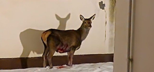 La vistosa ferita del cervo, probabilmente causata da un “errore di valutazione” dell’animale nel saltare un ostacolo