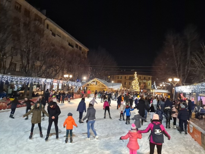 Piazza Martiri della Libertà ospiterà le tipiche casette di legno dedicate alle golosità, che proporranno prelibatezze dolci e salate oltre alla pista di pattinaggio.