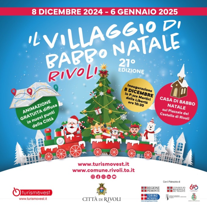 A Rivoli torna il Villaggio di Babbo Natale, tra i primi nel suo genere nati in Italia e ad ingresso gratuito. Per la ventunesima edizione, aperta tutti i giorni dall’8 dicembre al 6 gennaio, il centro storico della città si trasforma in un paese incantato, per accogliere le famiglie nel mese più magico dell’anno.