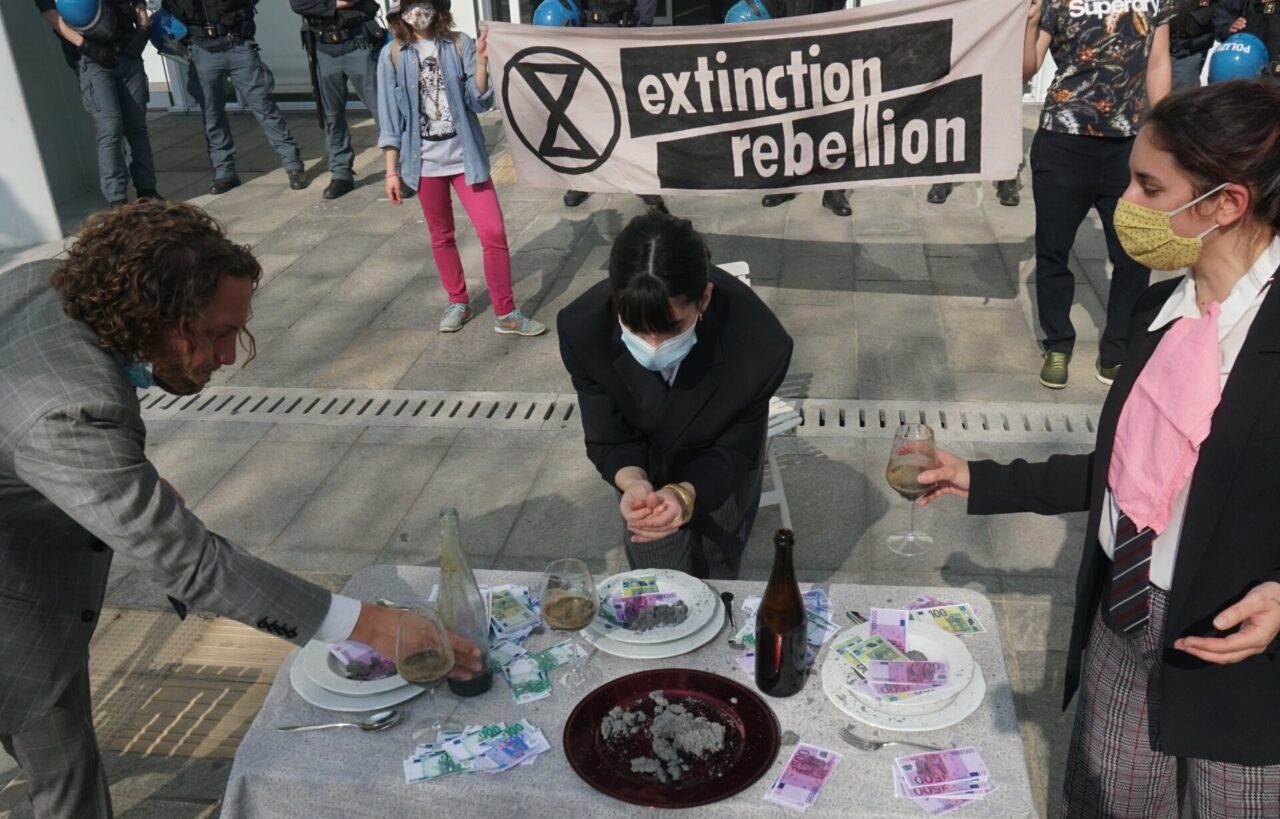 E’ la data scelta a livello internazionale dal movimento Extinction Rebellion per denunciare le responsabilità del settore finanziario nella crisi climatica ed ecologica, a causa dei continui e massicci investimenti nell’estrazione dei combustibili fossili. Lo scorso anno, a Torino, attivisti di Extinction Rebellion erano già stato protagonisti di una serie di azioni nei confronti di Intesa Sanpaolo, per denunciare la totale insufficienza della policy per l’uscita