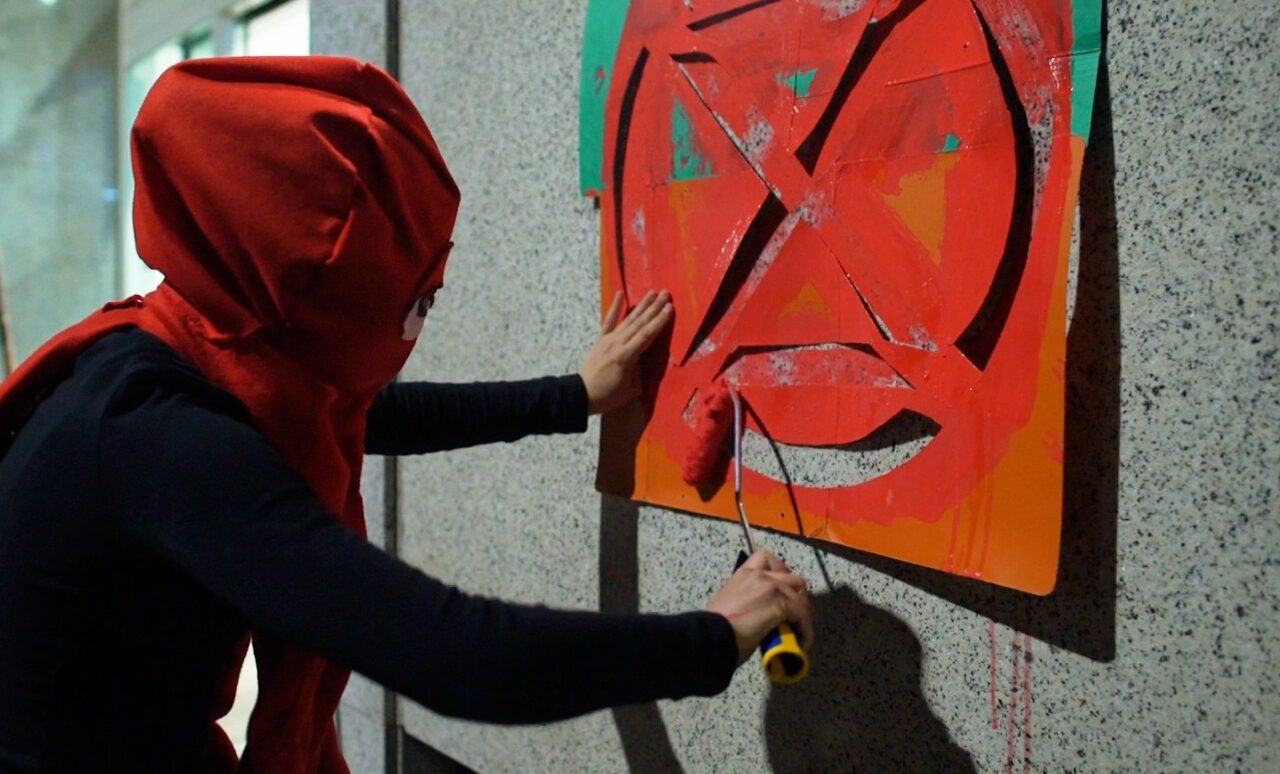 Il messaggio dell’installazione è stato integrato dalla performance di apertura: un banchetto i cui ospiti d’onore sono attivisti travestiti da banchieri a cui vengono servite lussuose portate a base di denaro. La morale della performance è ben espressa dalla frase che campeggia sullo sfondo del banchetto: “Quando l’ultimo albero sarà abbattuto, l’ultimo pesce mangiato e l’ultimo fiume avvelenato, ci renderemo conto che non possiamo mangiare denaro”. Gli attivisti hanno anche creato delle grosse installazioni posizionando enormi cartelloni segnaletici tra i semafori che circondano il grattacielo. Il tutto sotto l’occhio vigile della Polizia in assetto anti-sommossa, evidente deterrente, anche se lo svolgersi della protesta sembrava improntato alla contestazione pacifica. Prevista anche la famigerata “cacerolazo” ovvero una forma di manifestazione non violenta e fastidiosa in cui il dissenso viene espresso attraverso il rumore di oggetti come pentole, mestoli e padelle.