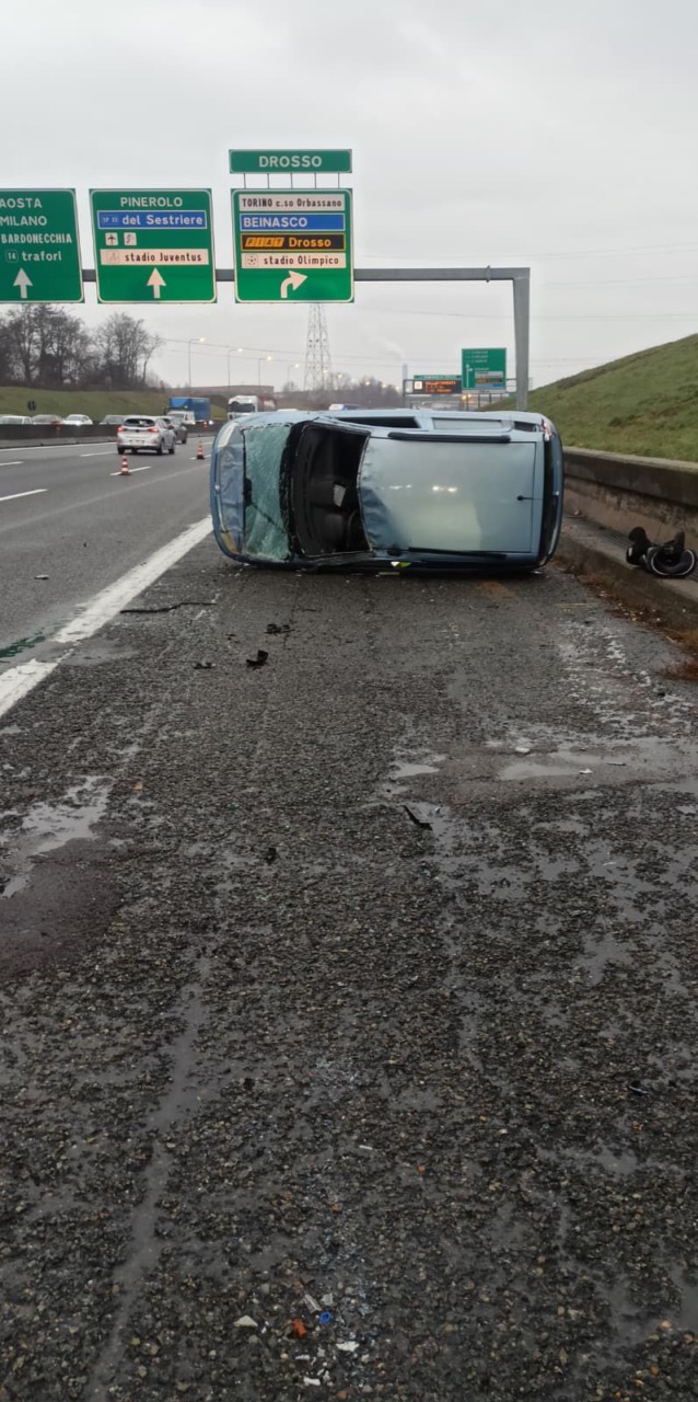 Un’auto si è ribaltata sul fianco autonomamente. Nel sinistro una persona è rimasta ferita ed è stata trasportata dal personale del 118 in codice giallo al San Luigi di Orbassano. Lievi disagi alla circolazione.