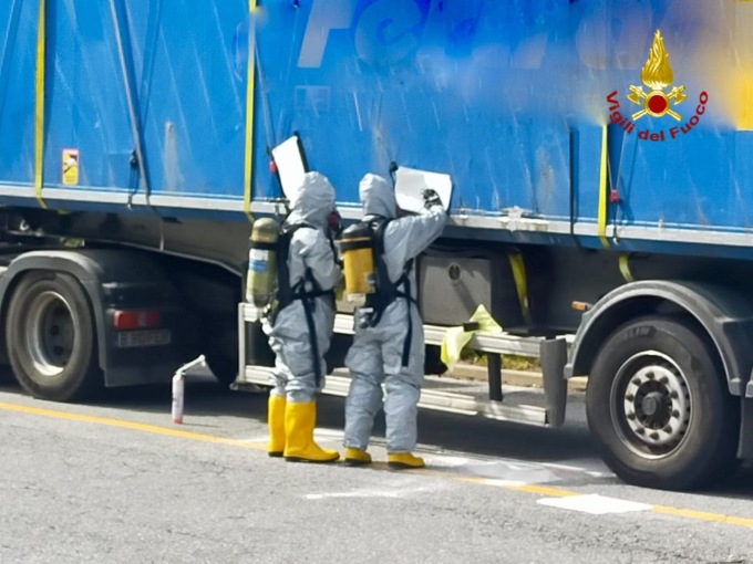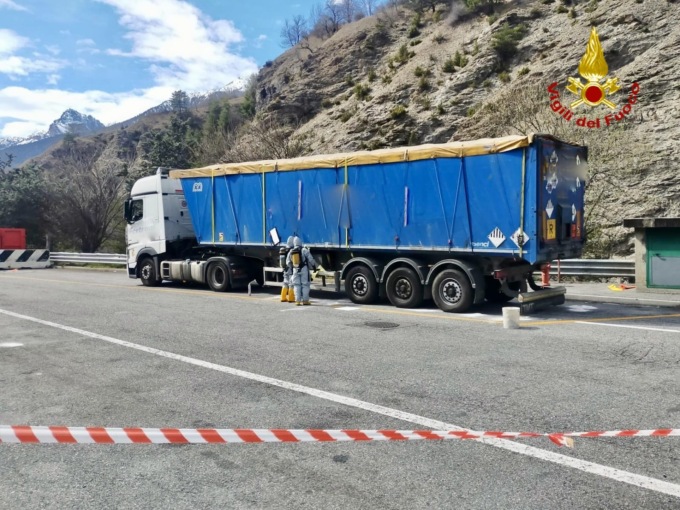 Sul posto sono intervenuti gli agenti della Polstrada, il nucleo NBCR, la squadra “91” di Susa, e il responsabile operazioni di soccorso. Parte del materiale ha iniziato a colare all’esterno del cassone ed è stata subito attivata la procedura di rimozione del veicolo su un piazzale isolato. Con banne assorbenti è stata contenuta la perdita. Fortunatamente non viene segnalata nessuna persona coinvolta senza problemi la circolazione.