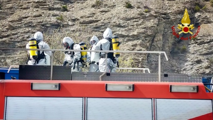 I vigili del fuoco del comando di Torino stanno intervenendo sul versante italiano del tunnel del Frejus per un autoarticolato con un carico di rifiuti industriali.