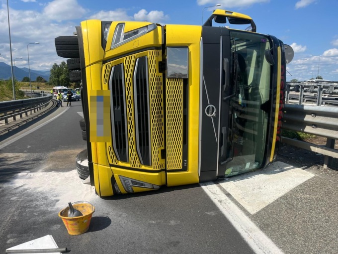Ieri pomeriggio (30 luglio 2025) intorno alle 16.30 un grosso camion si è ribaltato all’altezza dello svincolo per Bruere, in direzione di Piacenza.