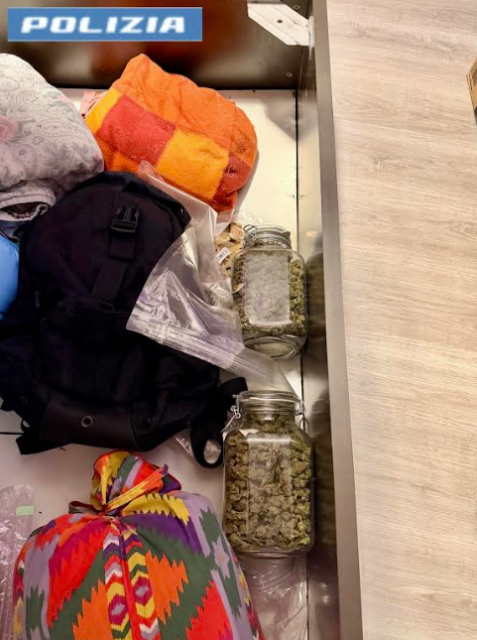 Sottoposti a controllo personale e domiciliare gli operatori trovavano e sequestravano 753 grammi di marijuana nascosti nel contenitore del letto e nella cassaforte, un barattolo contenente liquido con principio attivo THC, oltre a 1600 euro in banconote di piccolo taglio.