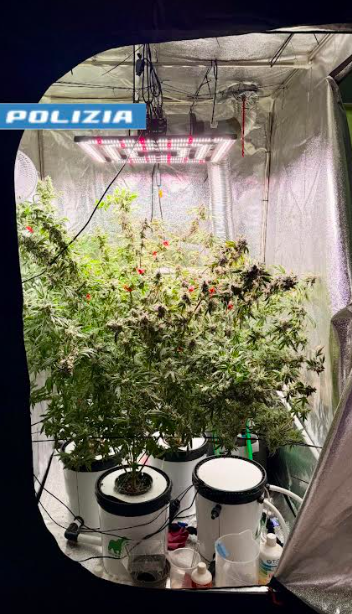 Nonostante il tentativo dell’uomo, i poliziotti sono riusciti a bloccare la porta e ad accedere all’interno dell’alloggio, trovando una serra indoor di marijuana con sistema di areazione collegata ad una finestra.
