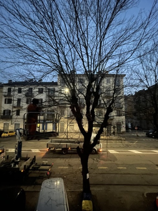 Ieri mattina, martedì 20 febbraio 2024, alle prime luci dell’alba, sono ripartiti gli abbattimenti e le potature degli alberi (aceri negundi) in corso Belgio a Torino.
