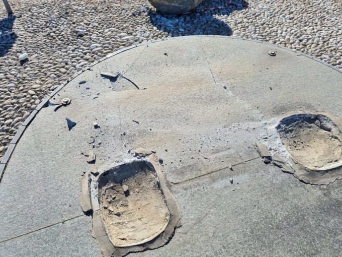 Nella tarda serata tra sabato 15 e domenica 16 aprile si è verificato presso la rotonda delle Macine in via Circonvallazione Interna, un incidente in occasione del quale un veicolo ha danneggiato le opere posate, appunto, sulla rotatoria.