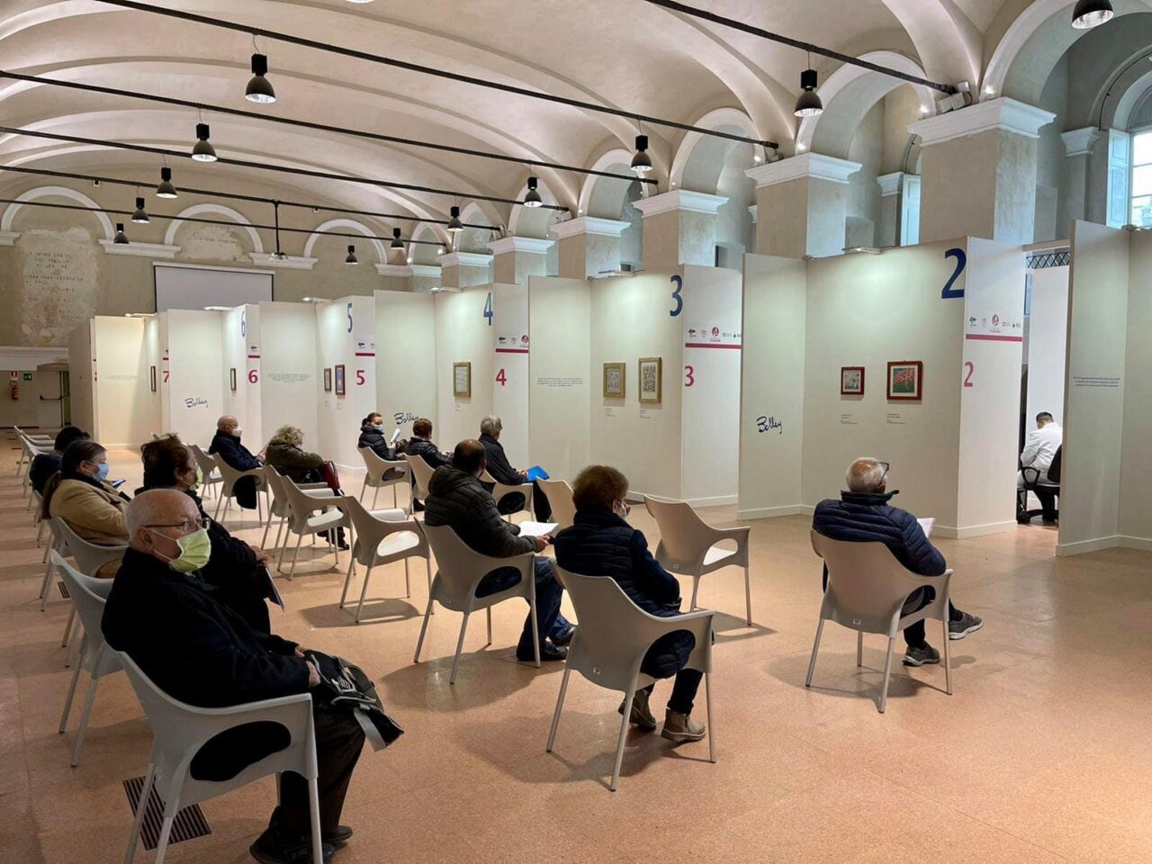 Questa mattina con il generale Figliuolo visita al centro vaccinale del Comando 1° Reggimento Carabinieri Piemonte. C’è una cosa che mi ha colpito particolarmente. In queste settimane l’Arma ha vaccinato qui le sue donne e i suoi uomini in tensostrutture all’aperto. Ma ora che ad essere vaccinati saranno i cittadini, i nostri Carabinieri hanno messo a disposizione per loro la sala della Cavallerizza, una delle più belle del Castello di Moncalieri, vestita con le opere d’arte di Banca Patrimoni Sella.