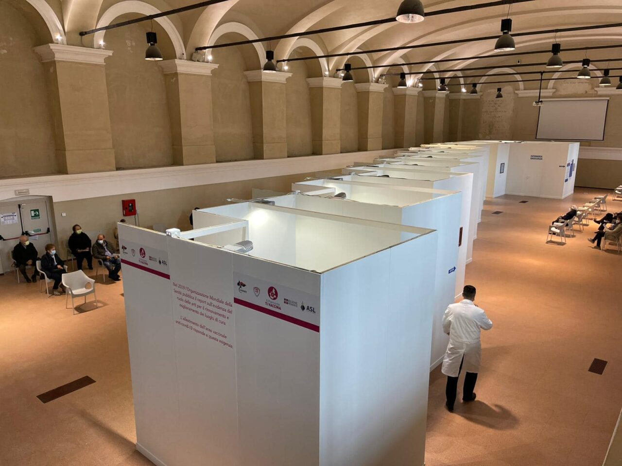 Il centro è stato realizzato lo scorso 11 febbraio, ed è dotato di otto linee vaccinali in grado di inoculare otto vaccini l’ora ciascuno.