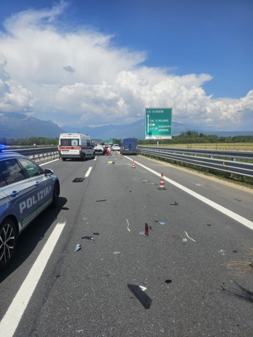 Incidente in A5 tra Scarmagno e Ivrea: auto ribaltata, un ferito in codice giallo