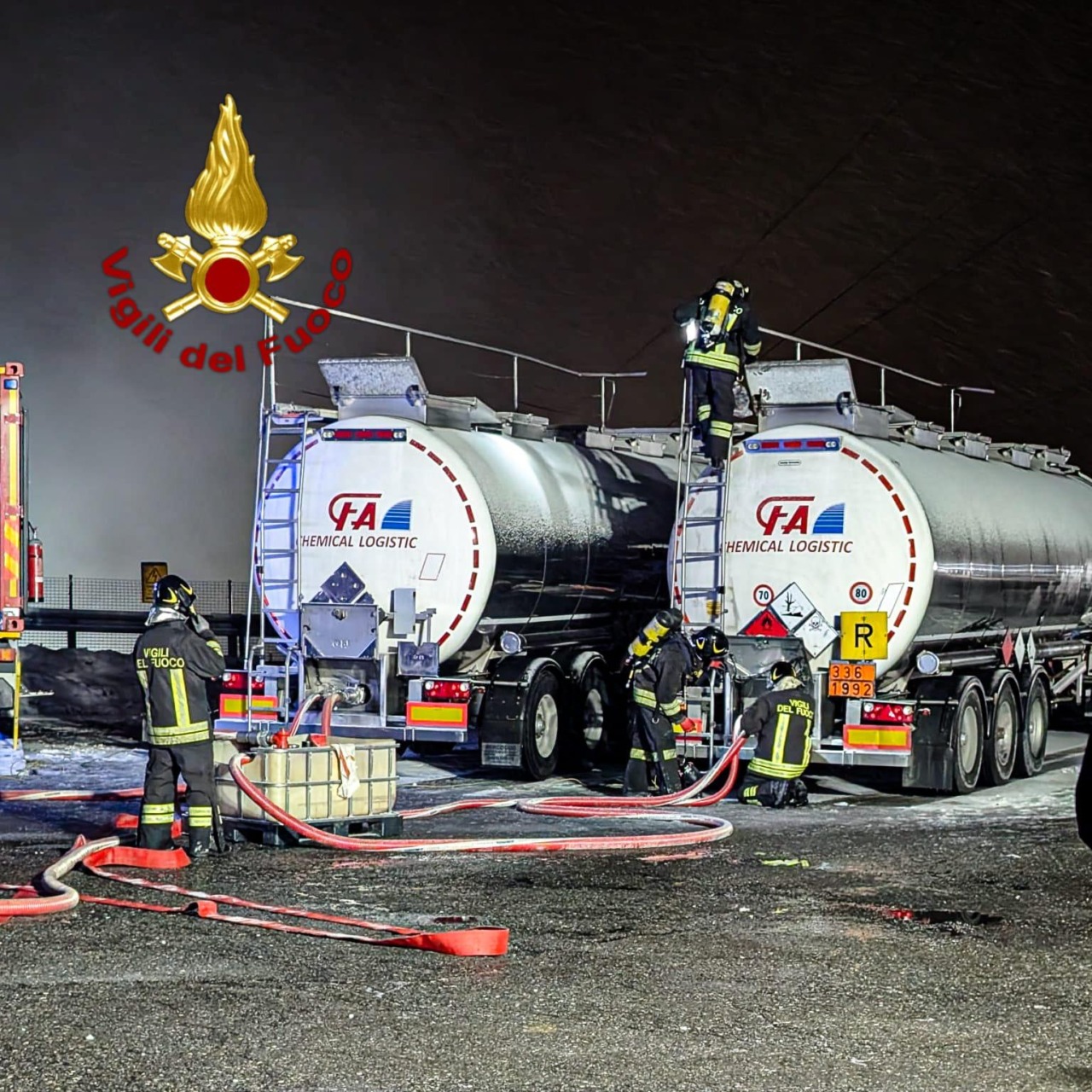 A partire dalle ore 18 di ieri, 2 febbraio 2026, otto squadre dei vigili del fuoco del comando di Torino, per un totale di 24 unità, sono intervenute sulla A32 a Chiomonte presso la galleria Cels, per una cisterna contente sostanza ADR (ovvero pericolosa ai fini del trasporto stradale e/o ferroviario e/o per navigazione interna), che si è staccata durante il transito dalla motrice dalla quale veniva trainata.