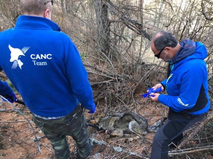 Una giovane lupa ferita alla testa da un morso recuperata dai sanitari del Canc: le sue condizioni di saluta al momento del ritrovamento erano pessime.