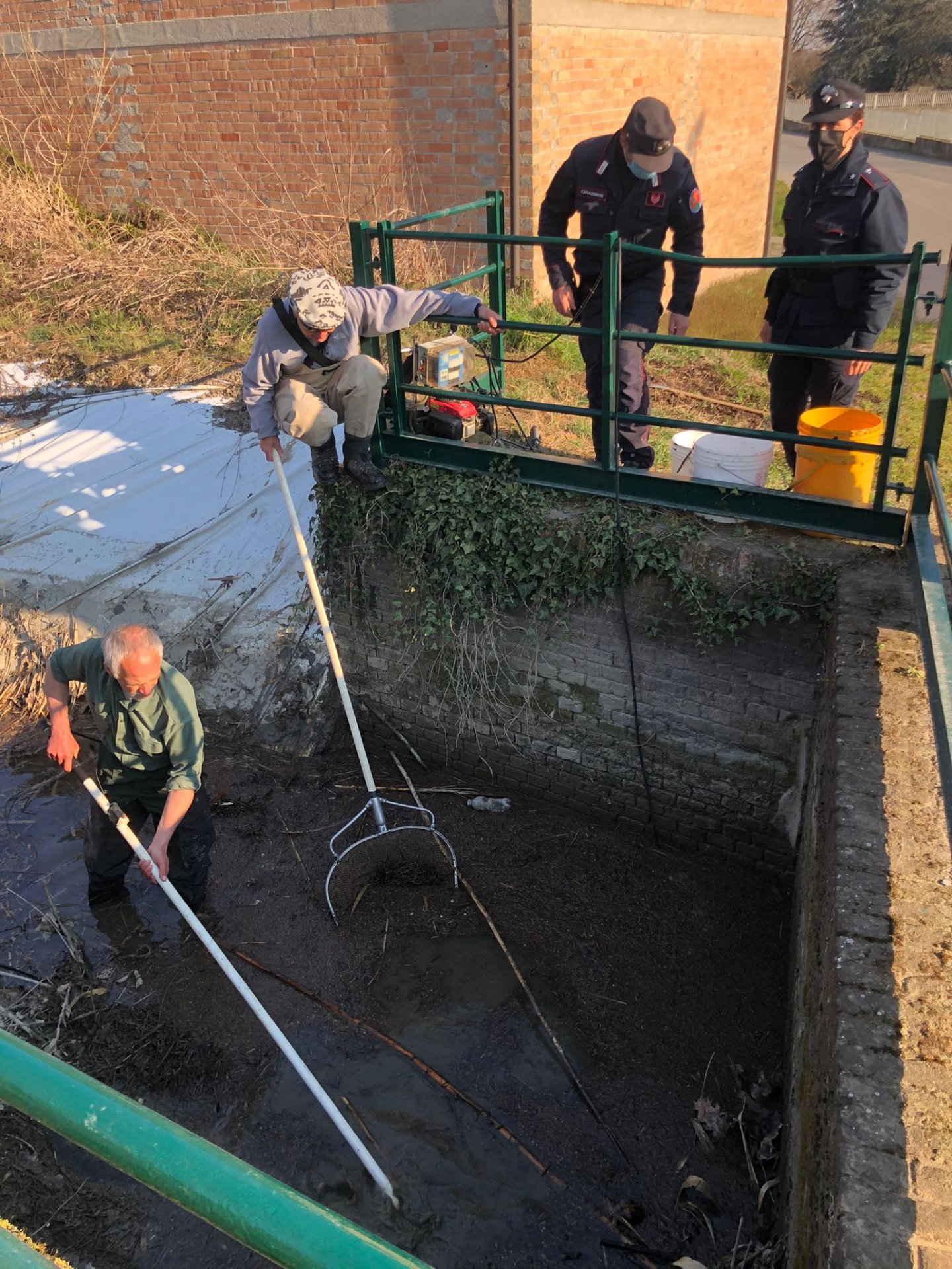 Per cause ancora da accertare (saranno i Carabinieri Forestali ad occuparsene) il Canale Gazzelli è rimasto in secca (forse per dei lavori alla presa sul Canale Cavour, da cui si alimenta) costringendo i pesci ad ammassarsi nei pochi punti più profondi.