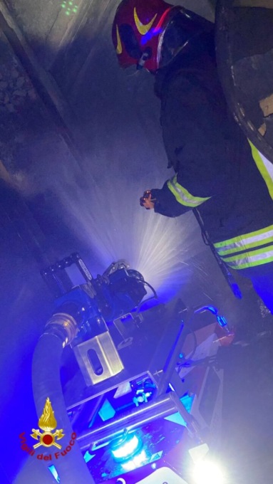 Le operazioni di spegnimento e bonifica sono continuate per tutta la notte. Sul posto oltre a numerose squadre dei Vigili del Fuoco, autobotti, UCL ed autoscala anche il nuovo robot antincendio telecomandato utilizzato per le operare in condizioni di pericolo crolli della struttura. Ingenti i danni alla struttura.