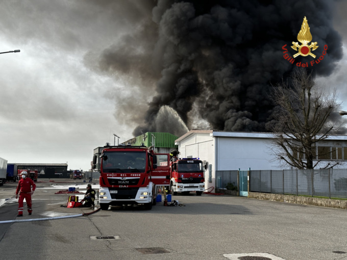 Le fiamme sono altissime e la colonna di fumo nero è visibile in tutta la pianura fino al Pavese e Milanese. Si sarebbero inoltre uditi una serie di scoppi, e in via precauzionale la zona è stata evacuata per il rischio di nuove esplosioni. Al momento non si segnalano persone coinvolte. Ignote le cause del rogo.