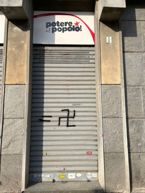 Due simboli che non sono passati inosservati, anzi. Così il movimento politico di estrema sinistra che ha visto la sua sede deturpata dichiara: