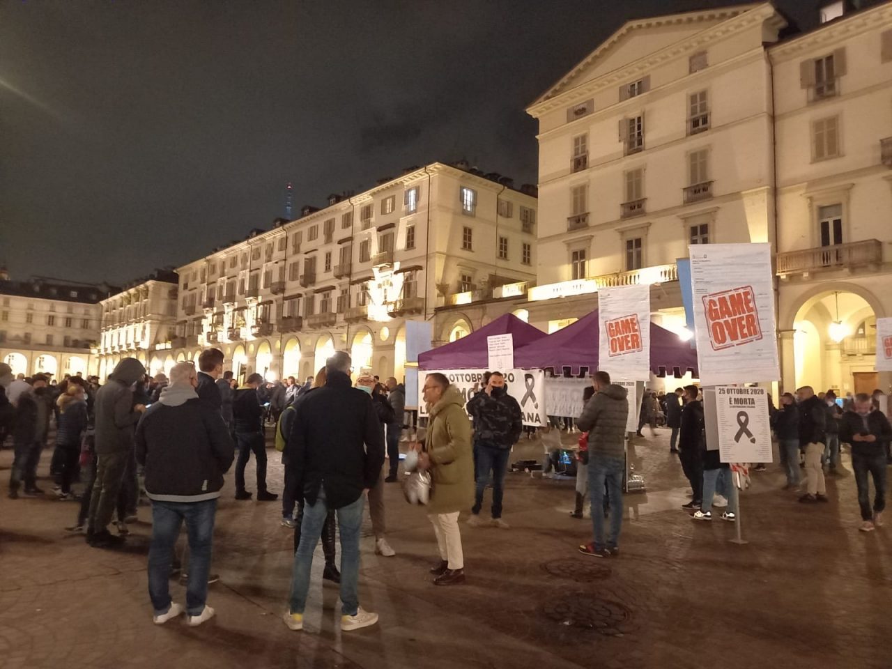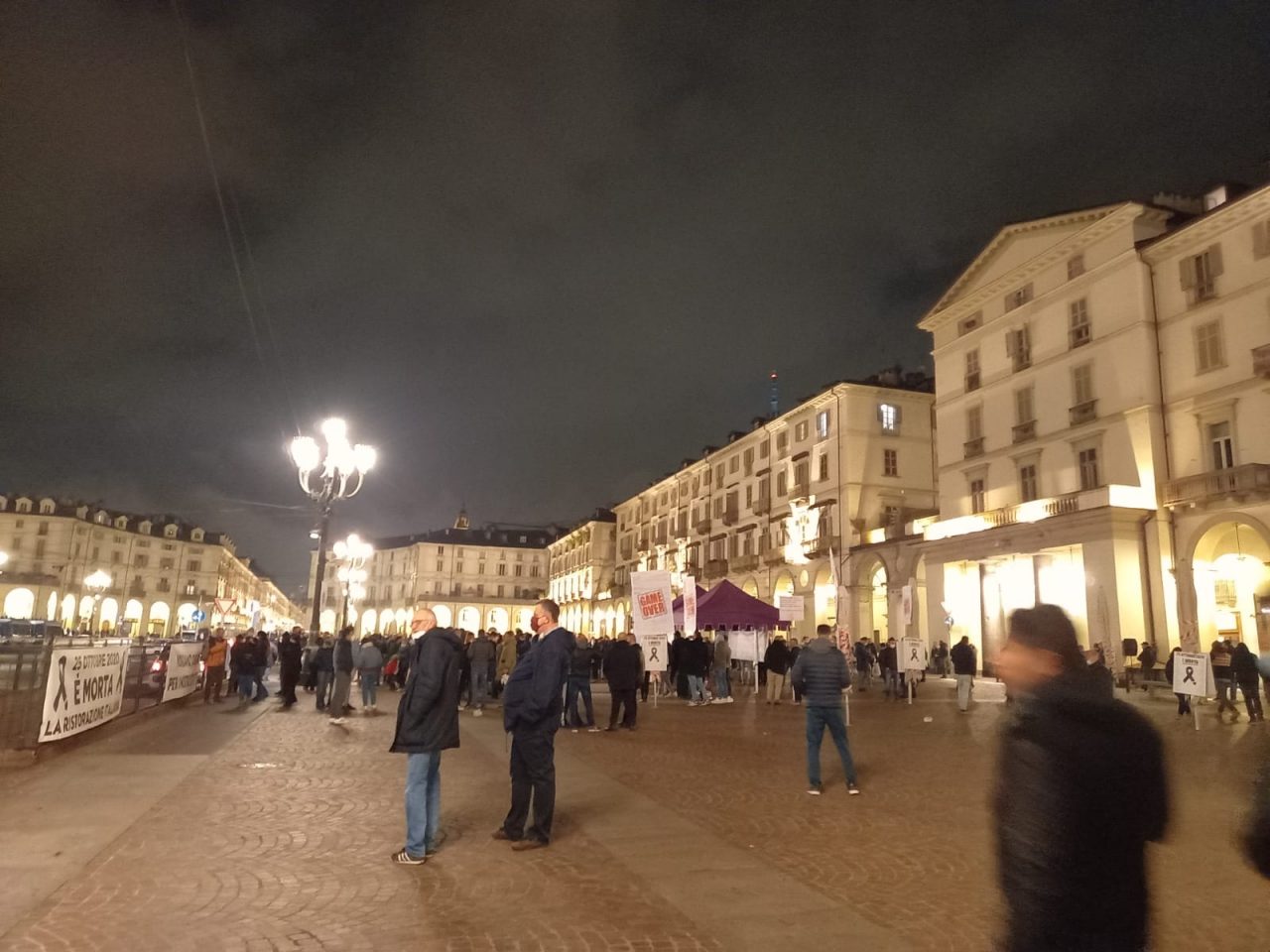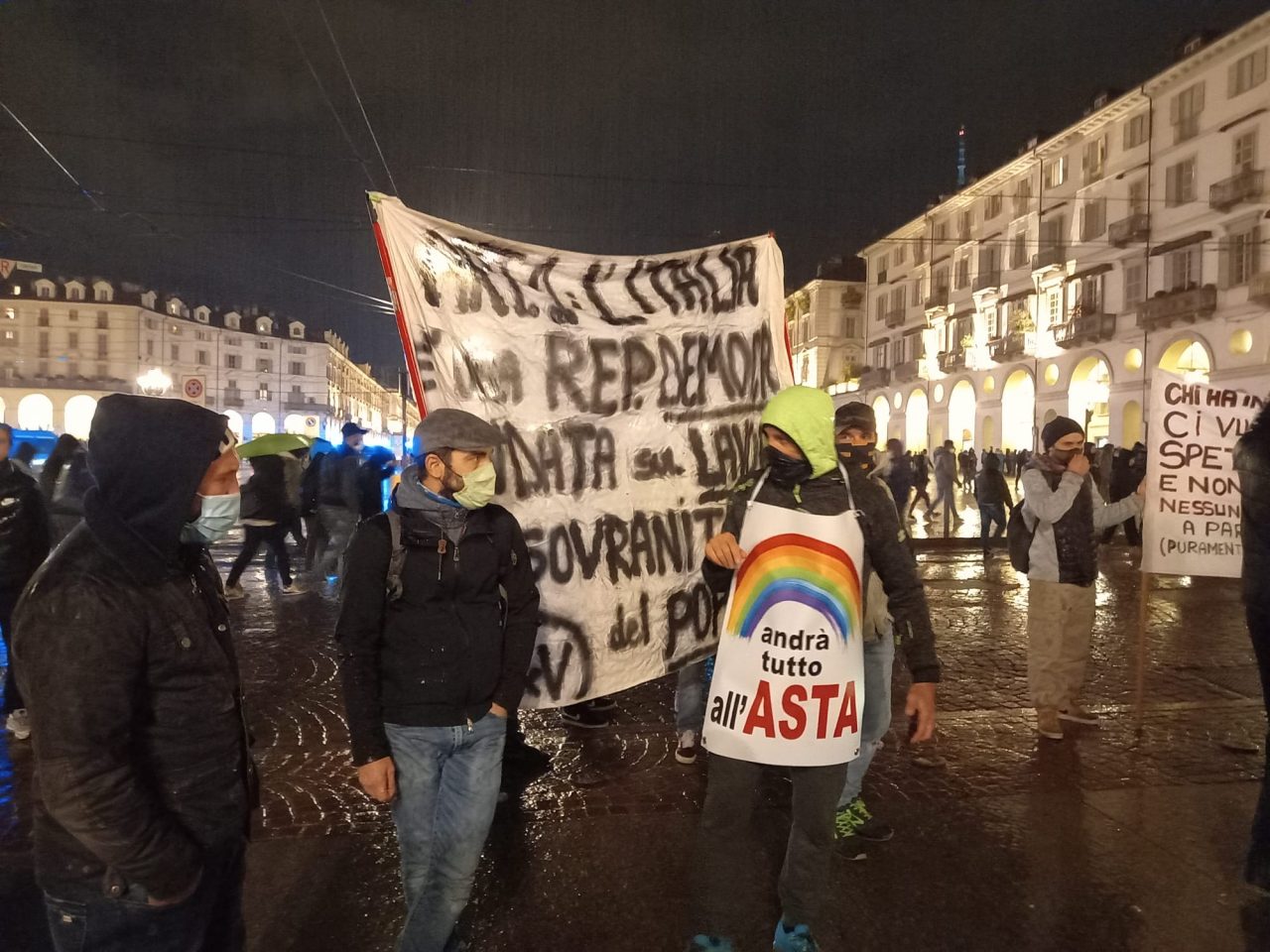 L’incubo di quanto accaduto in piazza San Carlo è ancora vivo nella memoria dei torinesi, e infatti la piazza già dopo le 21 ha iniziato a svuotarsi: chi non voleva correre rischi si è diretto attraverso via Po verso l’altra manifestazione in corso in piazza Vittorio, con un’atmosfera completamente diversa. Qui striscioni, megafoni e una rivendicazione esplicita da parte degli organizzatori, che non si sono nascosti dietro l’anonimato, ma si sono genericamente definiti un gruppo di gente che lavora, civile, senza facinorosi. Nei toni però all’Esecutivo non le hanno mandate a dire (“Non ci meritiamo questi incompetenti al Governo”).