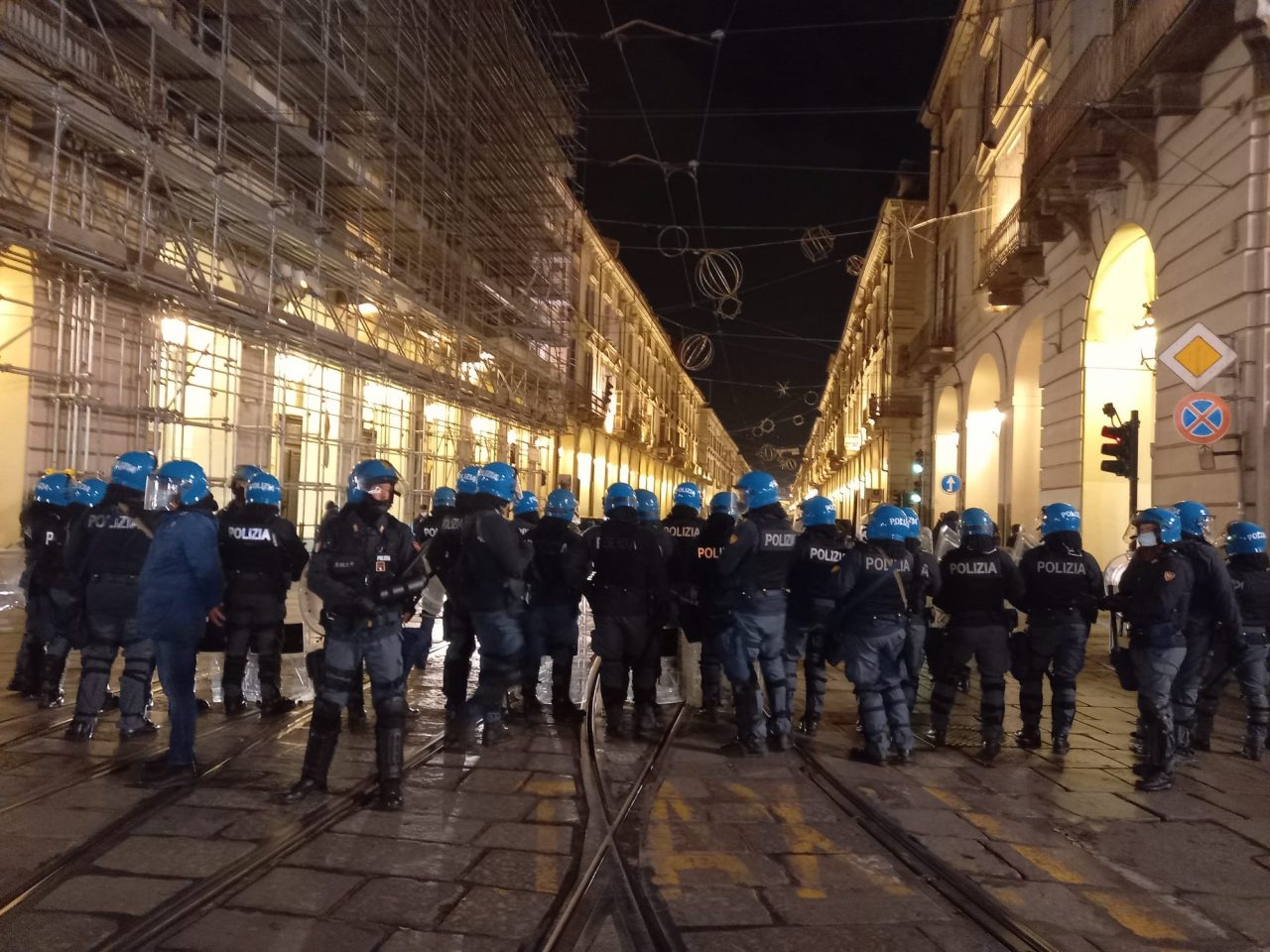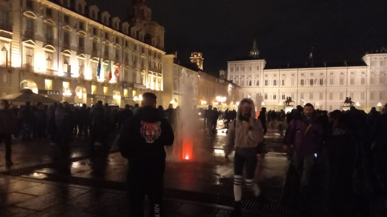 Due le manifestazioni di protesta contro l’ultimo Dpcm del Governo Conte, ieri sera, lunedì 26 ottobre 2020, nel centro di Torino. Una situazione calma… come una bomba, ovvero pronta ad esplodere.