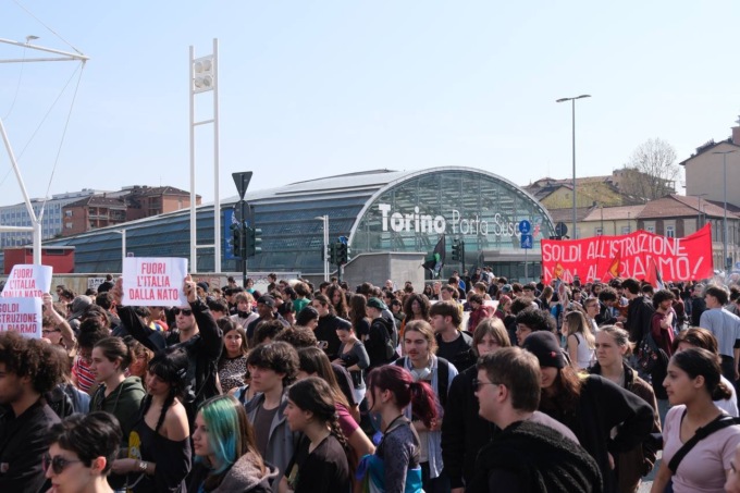 Questa mattina, venerdì 4 aprile 2025, un folto gruppo di giovani studenti sono scese per le vie del centro di Torino contro il riarmo europeo. A promuovere la giornata di mobilitazione il Fronte della Gioventù Comunista (Fgc).