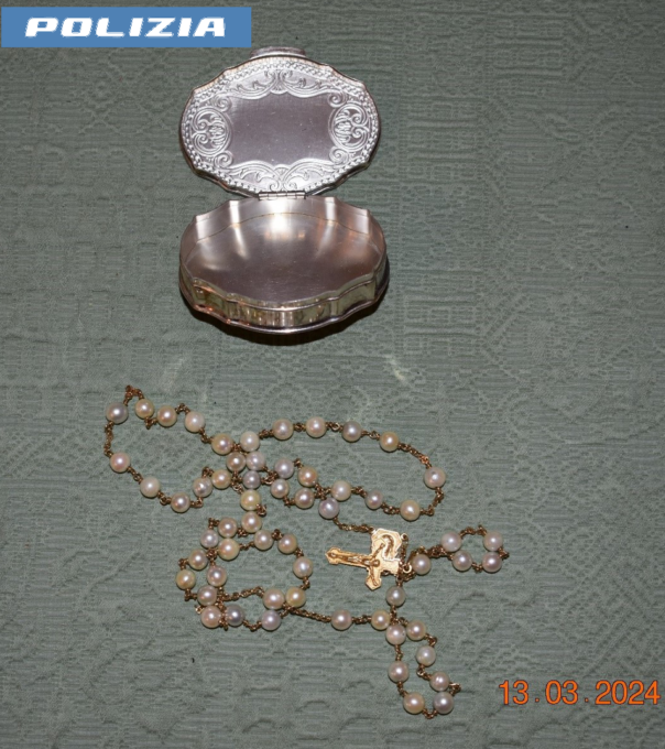 Tutto il contenuto della borsa è stato riconosciuto dall’anziana signora come i ricordi di un’intera vita, tra cui persino la sua fede nuziale e quella del defunto marito, nonché tutti gli ori di famiglia messi da parte nel corso del tempo. La refurtiva è stata immediatamente restituita, in sede di denuncia, alla donna.