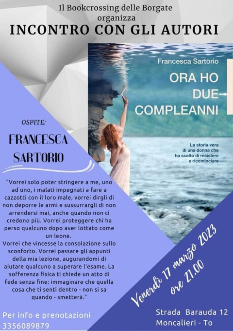 L’ospite di questo primo appuntamento è stata Francesca Sartorio e ha presentato il libro dal titolo “Ora ho due compleanni”.