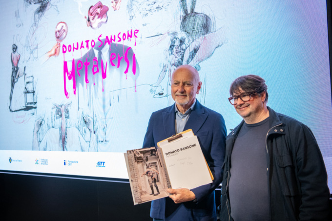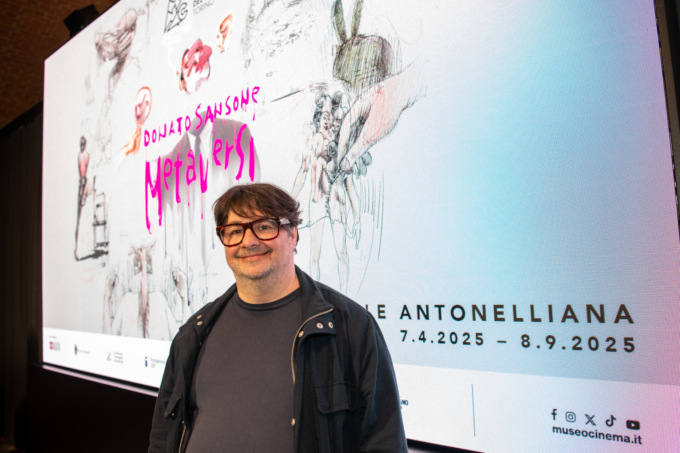 Dal 7 aprile all’8 settembre 2025, il piano di accoglienza del Museo Nazionale del Cinema di Torino ospita la mostra DONATO SANSONE. METAVERSI, a cura di Bruno Di Marino, la prima personale dedicata a Donato Sansone, artista, animatore e autore di brevi film, videoclip musicali, spot e altri “scherzi” audiovisivi, di lavori surreali e provocatori realizzati con tecniche diverse che traducono in tratto grafico e animazione diverse visioni della realtà.
