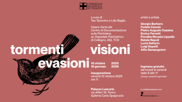 Previsti gli interventi di Davide Nicco, presidente del Consiglio regionale, Giovanni La Valle, direttore generale Asl TO3, Lillo Baglio, curatore della mostra, referente Centro di Documentazione sulla Psichiatria dell’ASL TO3 e Tea Taramino, curatrice della mostra, presidente associazione Forme in bilico APS.