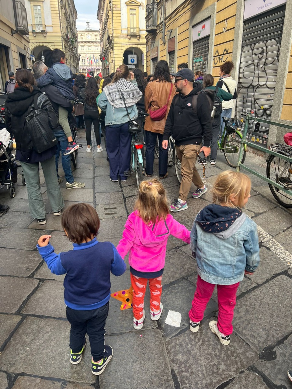 Per questo motivo, se qualcuno è interessato a partecipare anche solo per un piccolo pezzo, con o senza i bambini, a una delle manifestazioni che si terranno a Torino questa sera o domani (in occasione dello sciopero generale) per chiedere il cessate il fuoco nella striscia di Gaza e il libero accesso degli aiuti umanitari , l’Associazione si mette a disposizione per reperire informazioni su orari e percorsi e per organizzare un punto di ritrovo e camminare insieme.