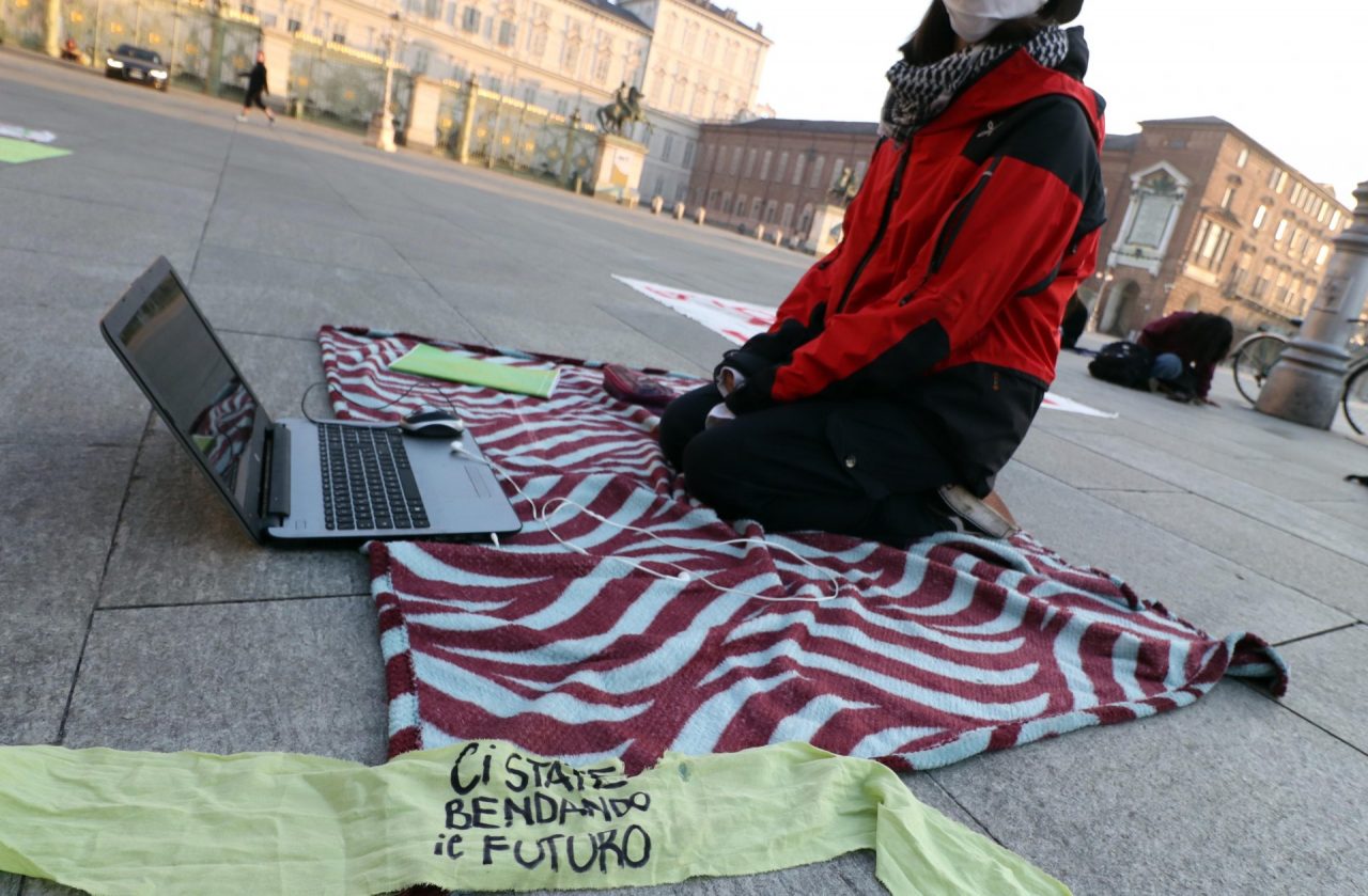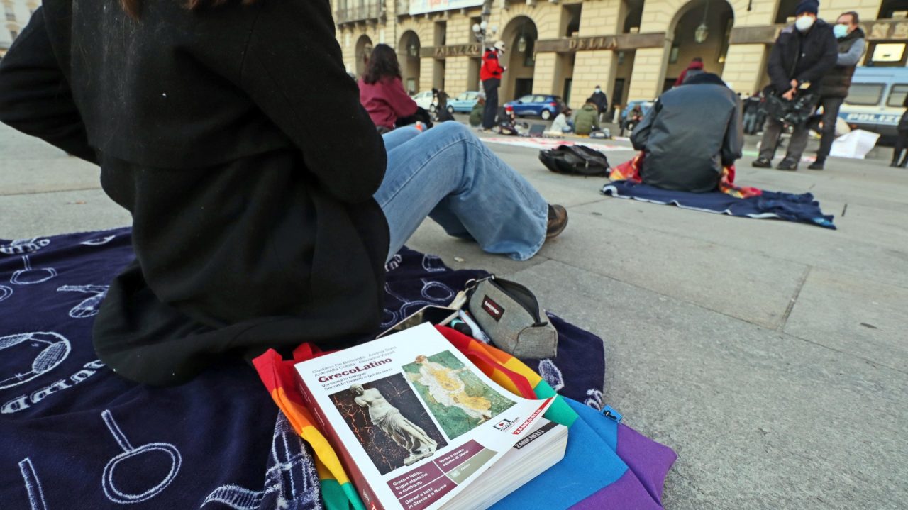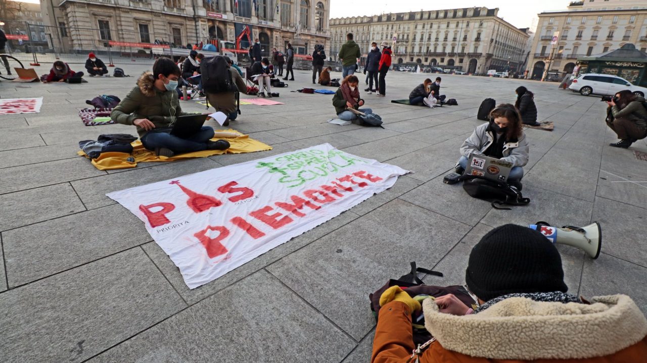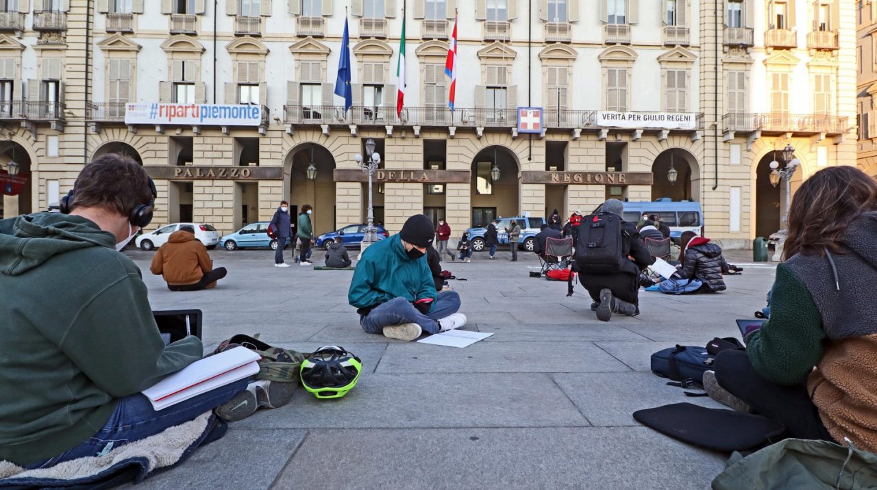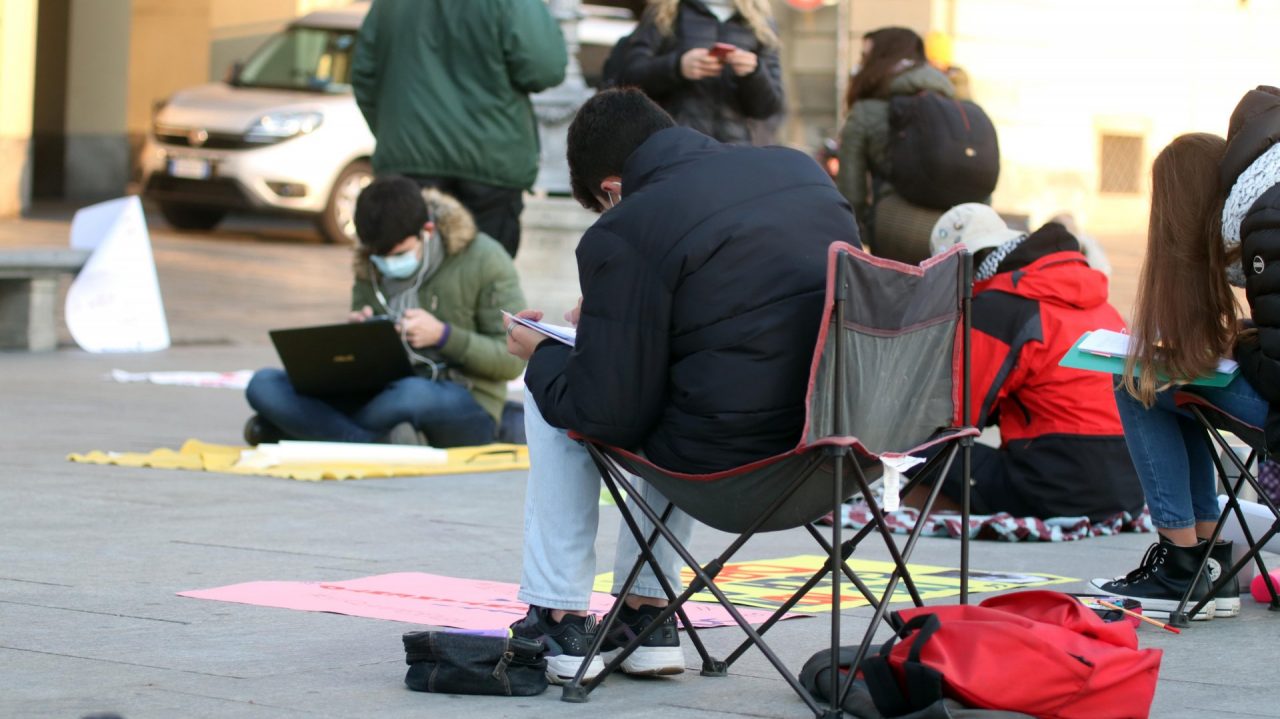 Ritorno alla didattica in presenza e maggiori garanzie per il ritorno a scuola in totale sicurezza. E’ quello che chiedono gli studenti torinesi che nella mattinata di oggi, giovedì 26 novembre 2020, si sono ritrovati in piazza Castello ai piedi del Palazzo della Regione Piemonte. Chi seduto a terra su coperte, chi con tanto di thermos e sedia da campeggio, tutti hanno tenuto tra le mani libri e quaderni, insieme a computer, tablet e cellulari, divenuti ormai strumenti indispensabili per seguire le lezioni organizzate secondo la Didattica a Distanza.