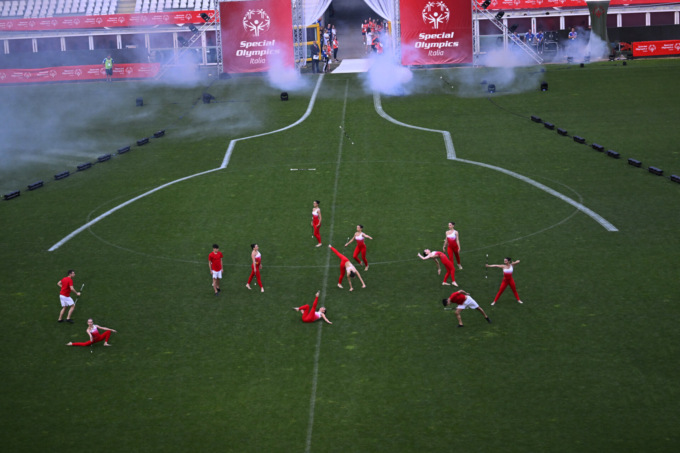 L’evento si è caratterizzato per un susseguirsi continuo e incessante di emozioni, con momenti di grande musica e spettacolo alternati al protocollo del cerimoniale olimpico con la conduzione di Francesco Gherardi, Raffaele Italiano e della campionessa di scherma Margherita Granbassi: la serata ha avuto inizio alle 21 con la sfilata delle delegazioni, suddivise per regione, con i 3mila atleti protagonisti assoluti delle gare in programma fino a giovedì 9 insieme ai loro tecnici. Dal campo si è poi levato un messaggio di pace universale, con l’ospite d’onore Arisa a intonare Imagine di John Lennon accompagnata al pianoforte dal Maestro Giuseppe Barbera e seguita da una intensa versione vocale dell’Inno di Mameli. “Che io possa vincere, ma se non ci riuscissi che io possa tentare con tutte le mie forze”: è stato il giuramento dell’atleta Special Olympics, ad annunciare al pubblico presente sugli spalti l’ingresso della torcia simbolo della diffusione dei valori olimpici tra i popoli scortata da un atleta e un atleta partner. L’entusiasmo è poi salito alle stelle con l’accensione del tripode e la dichiarazione di apertura dei Giochi a cura del Sindaco della Città di Torino Stefano Lo Russo.
